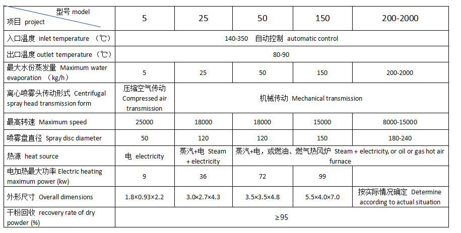 2. The capacity of the dried powder, allowable residual water content, particle size, and allowable maximum temperature.