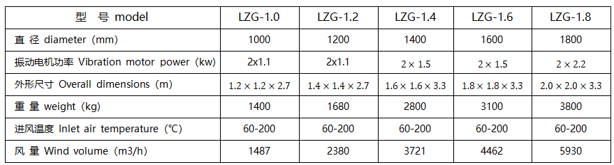 Wet materials enter the spiral bed from the top feeding port, and under the action of circumferential excitation force and gravity, the materials jump along the spiral bed from top to bottom until reaching the bottom layer; At the same time, clean hot air enters from the bottom of the spiral bed, undergoes sufficient heat and mass transfer with the materials distributed on the bed, and is discharged through the top dehumidification outlet. Thus achieving the purpose of drying the material.