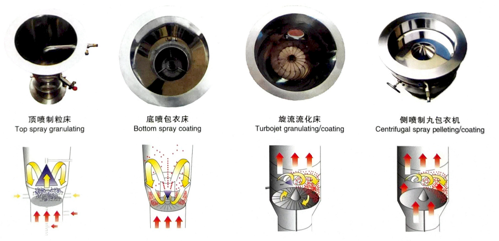 ◆ Granulation: tablet granules, granule granules, capsule granules.◆ Coating: granule, pill protective layer, color preparation, sustained-release, film, enteric coating.