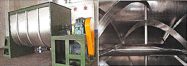 The mixing screw of the mixer is generally made into a double-layer structure. During operation, the outer screw collects the material from both sides to the center, while the inner screw pushes the material from the center to both sides, forming convective mixing. Spiral belt mixer is generally used for mixing viscous or cohesive granular materials, as well as for mixing materials that require the addition of liquid or paste in the granules; Due to the difficulty in cleaning viscous materials, they are often used in situations with high production and infrequent variety changes.